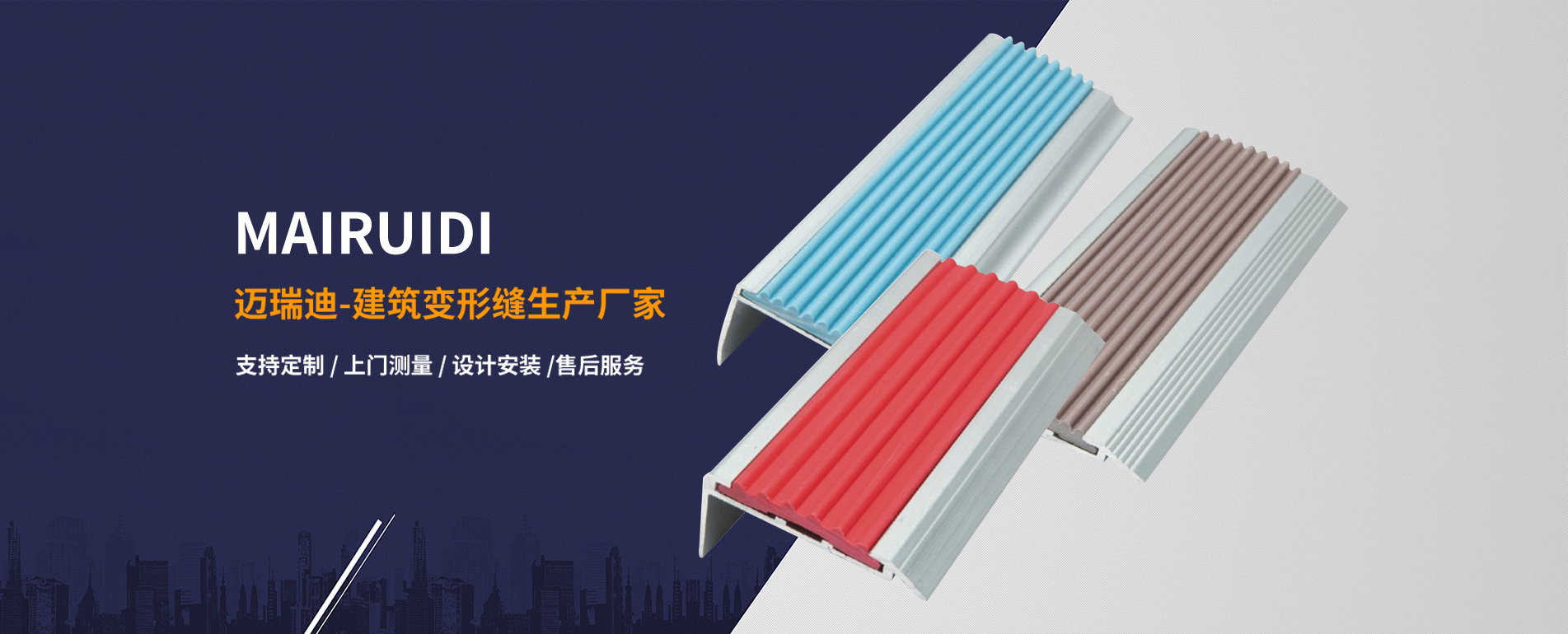 蘇州邁瑞迪工程材料有限公司座落于聞名全國的紅色旅游風景區(qū)—沙家浜。公司從事建筑變形縫、鋁合金樓梯防滑條、鋁合金防塵地墊(毯)的生產(chǎn)、科研。年產(chǎn)各類變形縫12萬延米,鋁合金除塵地墊(毯)3萬平米,鋁合金踢腳線6萬米,鋁合金樓梯防滑條(止滑條)18萬米。
